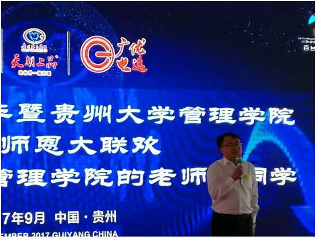 2017年9月10日,国际美酒嘉年华暨贵州大学管理学院“感谢师恩”大联欢在金阳会展中心酒博盛会上举行,聚会云集了贵州管理学院MBA、EMBA、EDP的200余名学子,他们自发组织此次谢师联谊活动,邀请了贵州大学管理学院党委书记陶玉顺、院长李烨、院长助理EMBA\EDP中心主任张勇等数十名领导和老师莅临联谊会,贵州大学EMBA校友会会长、贵州长通集团董事长张钊,贵州大学EMBA校友会副会长、贵州国际酒类博览会股份有限公司董事长戴军,贵州大学MBA校友会会长、贵州楚天环保有限公司总经理胡文,贵州大学MBA校友会副会长、新浪贵州&驰宇音响总经理包新等学生代表分别发言,赞颂老师博学多才的专长和无私奉献的胸怀;部分学生用歌舞、朗诵的方式表达对师者的敬爱之情。