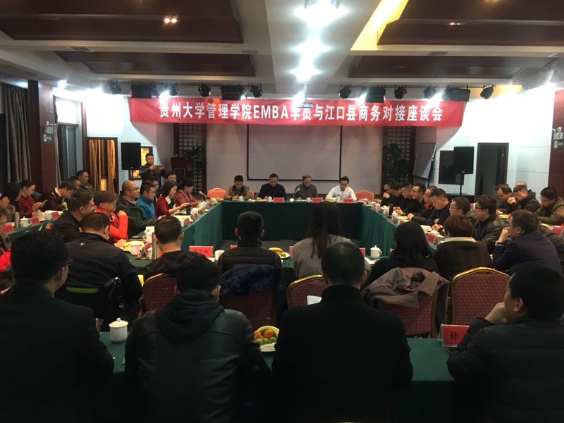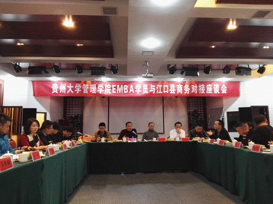 2017年12月8日,贵州大学管理学院EMBA学员与江口县进行了商务对接座谈,经过近3个小时的互动交流,座谈会成功举行。