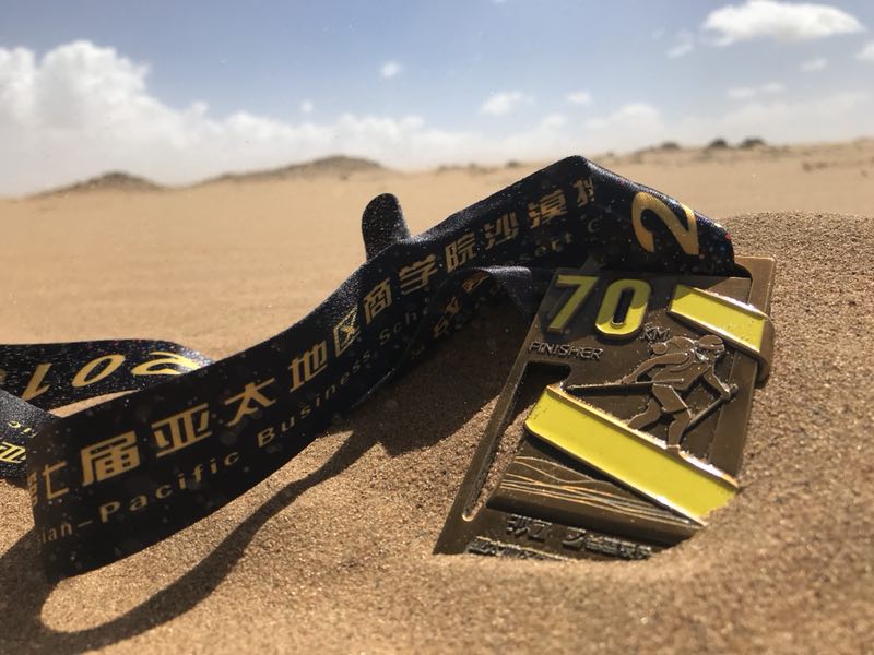 “亚太地区商学院沙漠挑战赛”,是在亚太地区顶级商学院的MBA学员群体中展开的一项竞技体验式文化赛事,本次也是亚沙史上赛程强度最大、赛事体验最虐的一届。贵州大学作为观摩院校首次参加此项赛事,贵大参赛队员们在负重徒步穿行70公里沙漠过程中,直面高温、饥渴、日照、伤病等各种困难的挑战。并在两夜的沙漠住宿里,体验过肆虐的沙尘暴,经历过顶着大雨哆哆嗦嗦打理帐篷。艰苦环境对队员来说是一次很好的磨练,在过程中不断的自我突破、自我提升 ;在相互帮扶的团队里,体验和践行协作、坚持与责任,展现出贵大人的风采。