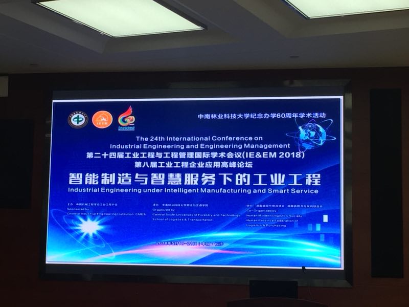 2018年5月18日下午,在王婷副院长的带领下,管理学院一行5位教师前往长沙,参加由中国机械工程学会工业工程分会主办、中南林业大学物流与交通学院承办的第24届工业工程和工程管理国际会议。会议议程分为两个部分:9:00-15:00由多位工业工程领域世界知名的专家进行主题报告,15:30-17:30在三个分会场由会议论文的投稿人同时进行分组报告。