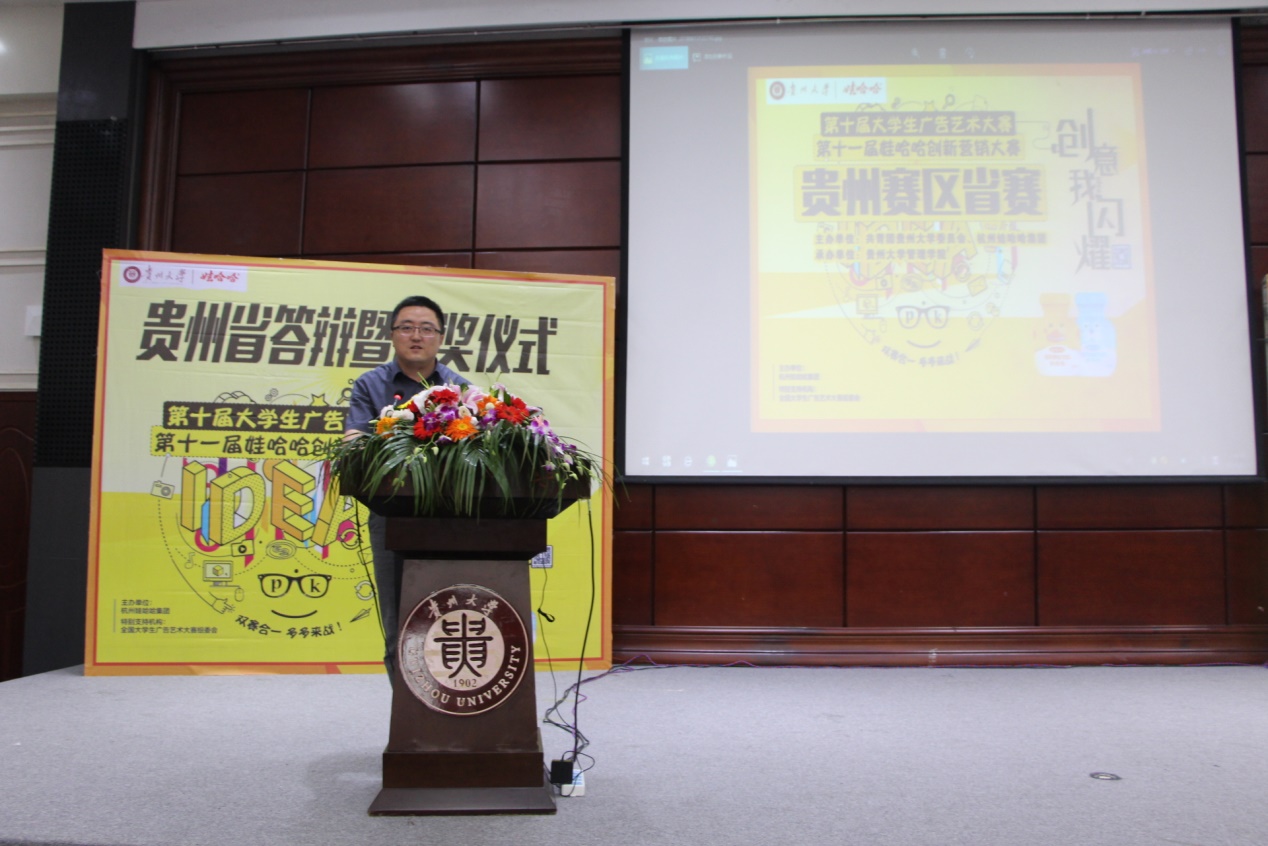 管理学院EDP中心主任张勇教授对参赛队伍进行了专业点评,杭州娃哈哈集团贵州市场副经理张明伟先生对此次活动进行总结,他首先代表娃哈哈集团对贵州大学、贵州大学管理学院和参赛学生表示感谢,对10支进入总决赛队伍的表现给予充分肯定,希望同学们在以后的学习、工作中把自己人生和工作的营销做得更精彩。