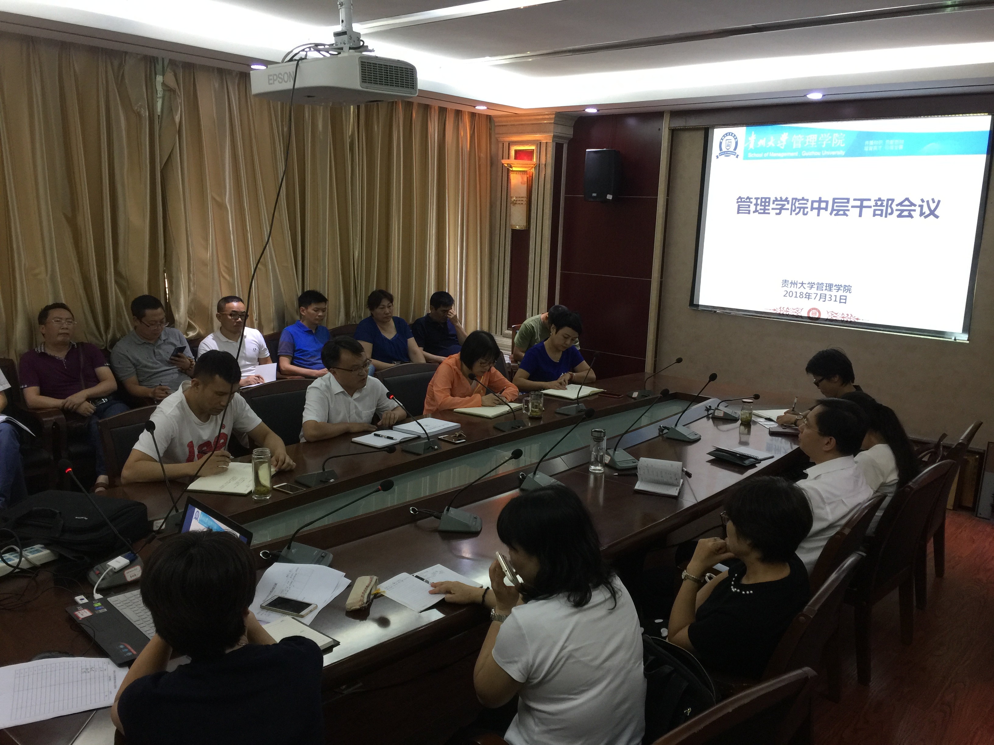 2018年7月31日下午2:30,学院召开2018年小学期中层干部会议,学院党政领导班子、各科室(中心)负责人、系主任、系党支部书记等中层干部出席会议,会议由李烨院长主持。
