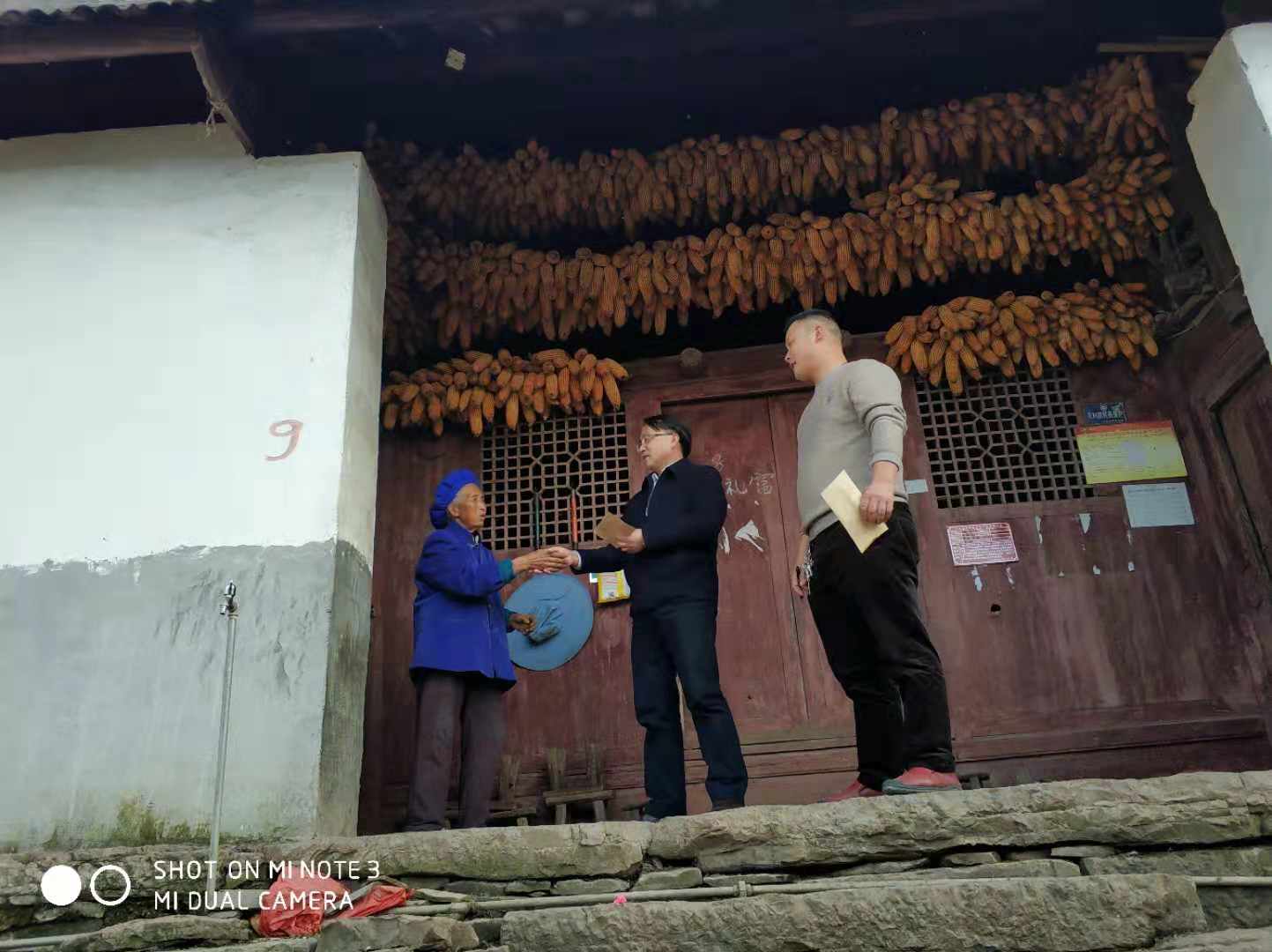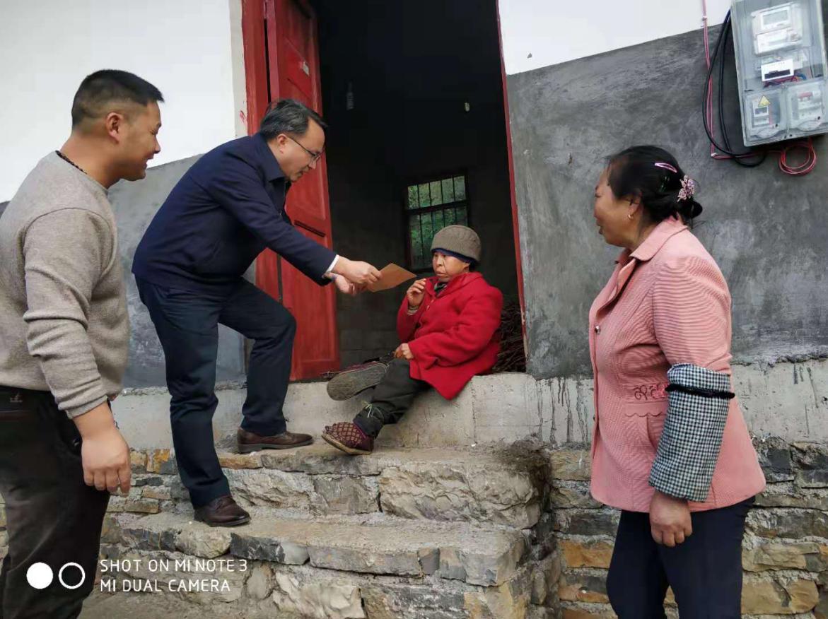 李烨院长一行在村支书的带领下看望贫困农户,与贫困农户进行亲切交谈,并向贫困农户发放慰问金。