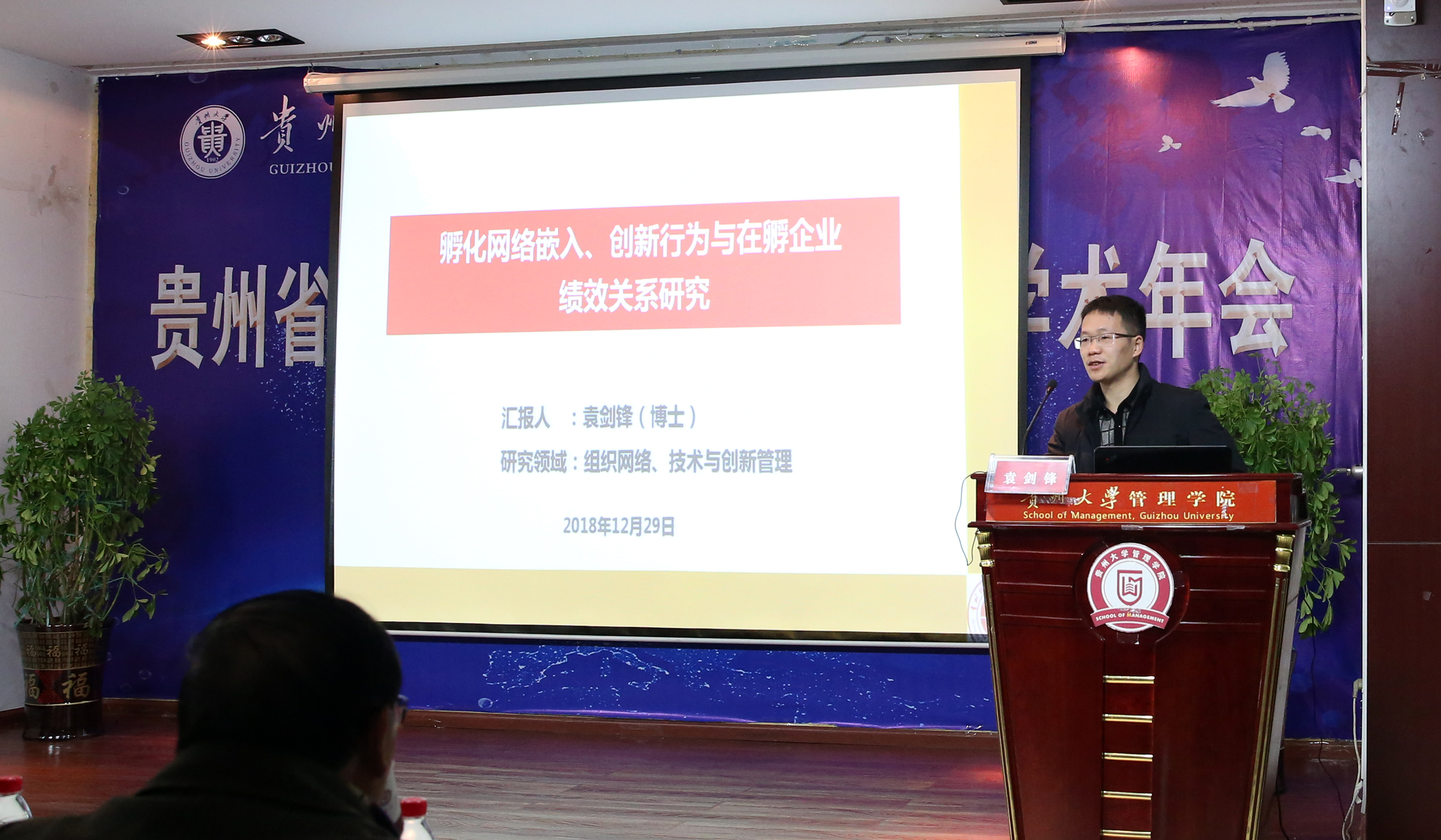 接着,来自贵州财经大学管理科学与工程专业的袁剑峰副教授作了题为孵化网络嵌入、创新行为与在孵化企业绩效关系研究的报告。袁剑锋副教授先是对目前孵化网络、创新行为及绩效关系的相关性研究进行了简要阐述,并针对目前存在的问题,提出了应构建孵化网络资源,提升商业中介能力等有效的建议。最后,我院副教授陈刚博士作了题为中国管理情境下应急物流系统优化的若干问题研究的主题报告,针对我国政府主导的应急物流管理类型,他认为可以从优化目标、不确定性、情景应对等方面进行更高水平更具意义的科学研究。