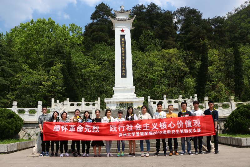 2019年4月9日下午14:30,管理学院2018级研究生第三党支部全体党员及13名入党积极分子赴黔灵山公园组织开展缅怀革命先烈,践行社会主义核心价值观扫墓活动。活动由党支部宣传委员丁双洁同志主持。