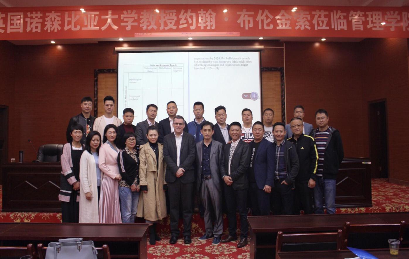 为增强贵州大学管理学院EDP教育中心国际化开放程度,聘请英国诺森比亚大学John Blenkinsopp教授于2019年4月13——14日两天在贵州大学北校区双馨园宾馆五楼会议室为EDP中国企业家(CEO)高级研修六、七、八期班学员们进行授课,学院副院长宋山梅教授出席了课程开班典礼。