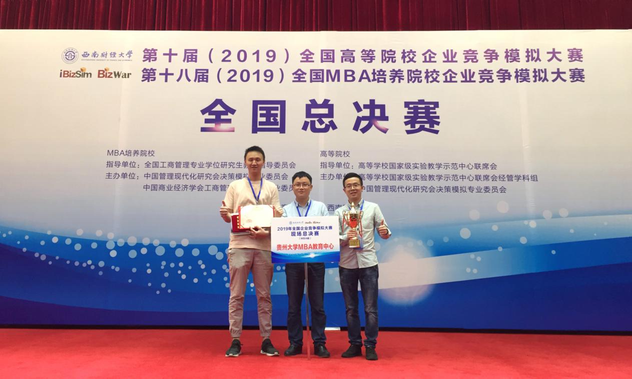 大赛吸引了包括西南财经大学、首都经济贸易大学、尼泊尔特里布文大学等国内外近300支队伍参赛,经过近二个月的预赛、复赛、半决赛的反复筛选,最终36支参赛队伍进入全国总决赛。由指导老师刘遗志副教授率领1704班廖廷军(队长)、刘佳旭(成员)、1806班杜丹(成员)代表贵州大学管理学院MBA中心,根据总决赛规则,考虑市场宏观政策影响,反复研究排班方法,总结定价规律,商讨长期战略,制定多种预案,最终凭着良好的团队协作能力,经过紧张、激烈的现场总决赛角逐,脱颖而出,荣获全国一等奖,这是我校代表队首次获此殊荣。