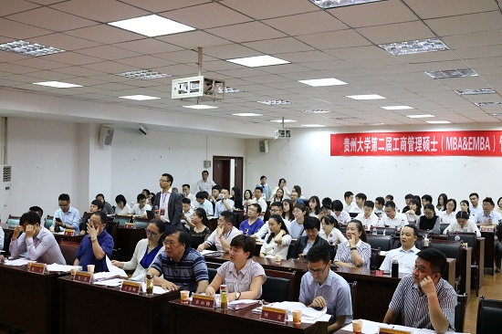 2019年6月15日,贵州大学管理学院MBA中心组织了贵州大学第二届工商管理硕士(MBA&EMBA)管理案例精英赛决赛暨第七届全国管理案例精英赛校园突围赛,贵州大学校研究生院院长杜滨、管理学院党委书记王秀峰、管理学院副院长宋山梅、管理学院教授林岚涛、管理学院副教授邢文杰、贵州交建投资有限公司党委副书记兼副董事长兼总经理何定、贵州楚天环保有限公司董事长胡文、贵州稻谷香建设投资有限公司董事长袁征福、中国人民财产保险股份有限公司毕节分公司党委书记兼总经理农刚担任大赛评委。莅临本场决赛的嘉宾有贵大校党委研究生工作部副部长张小彬、贵州大学研究生院副院长杨瑞东,管理学院副院长周莉莉以及MBA中心、EMBA中心、案例中心的各位指导老师。