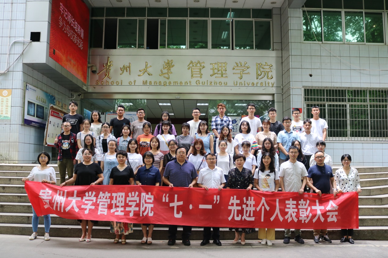 随后,院党委委员、副院长王婷教授宣读《中共贵州大学管理委员会 贵州大学管理学院关于表彰庆祝建党98周年先进集体和先进个人的决定》,进行了表彰仪式,学院领导分别为我院2019年度各项工作中涌现出的先进集体和先进个人颁发荣誉证书。随后,优秀教师党员代表陈颖老师和优秀毕业生党员代表涂跃俊分别发表感言,他们都回望过去,展望未来,感谢自己,感谢学院,也感谢遇见,并祝愿老师和同学们都能更进一步成就自我。
