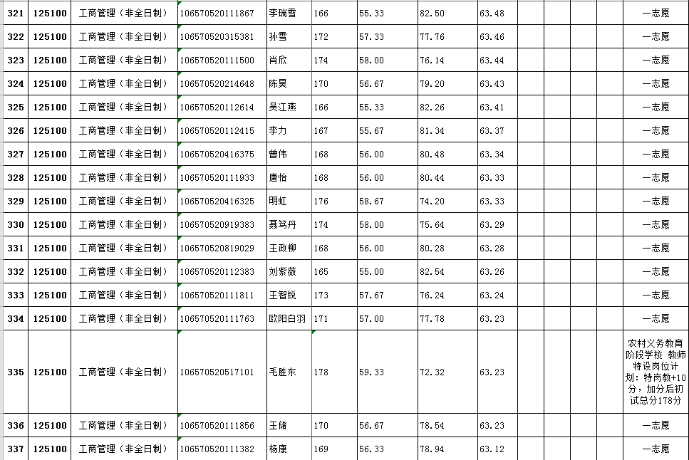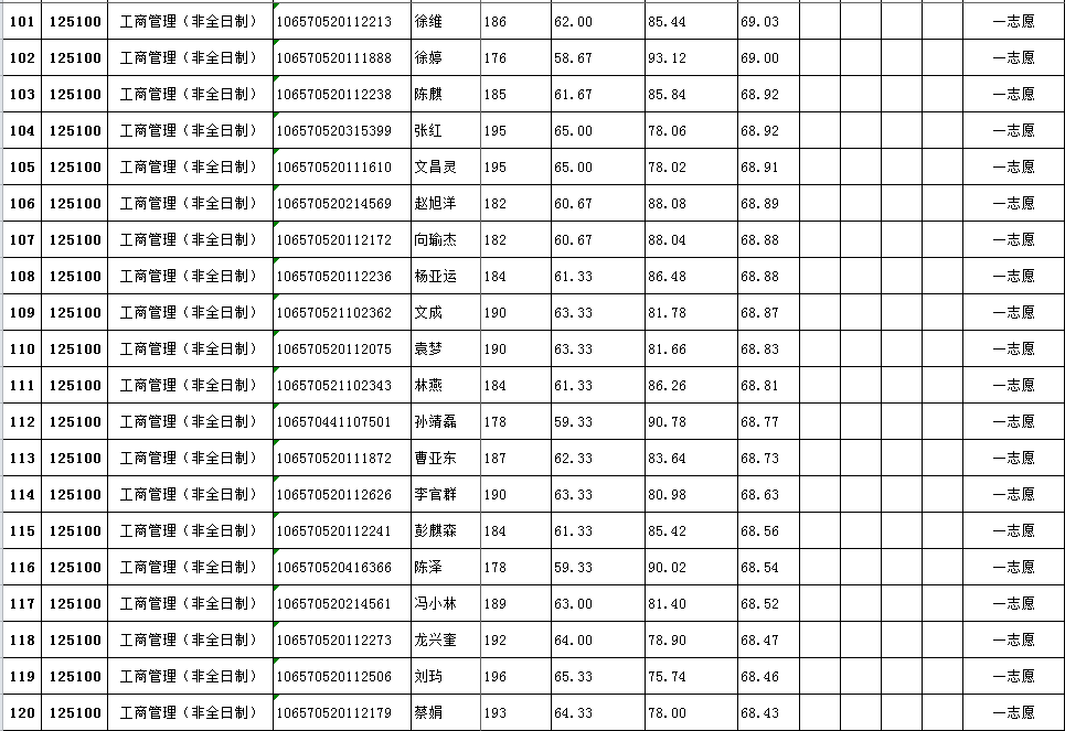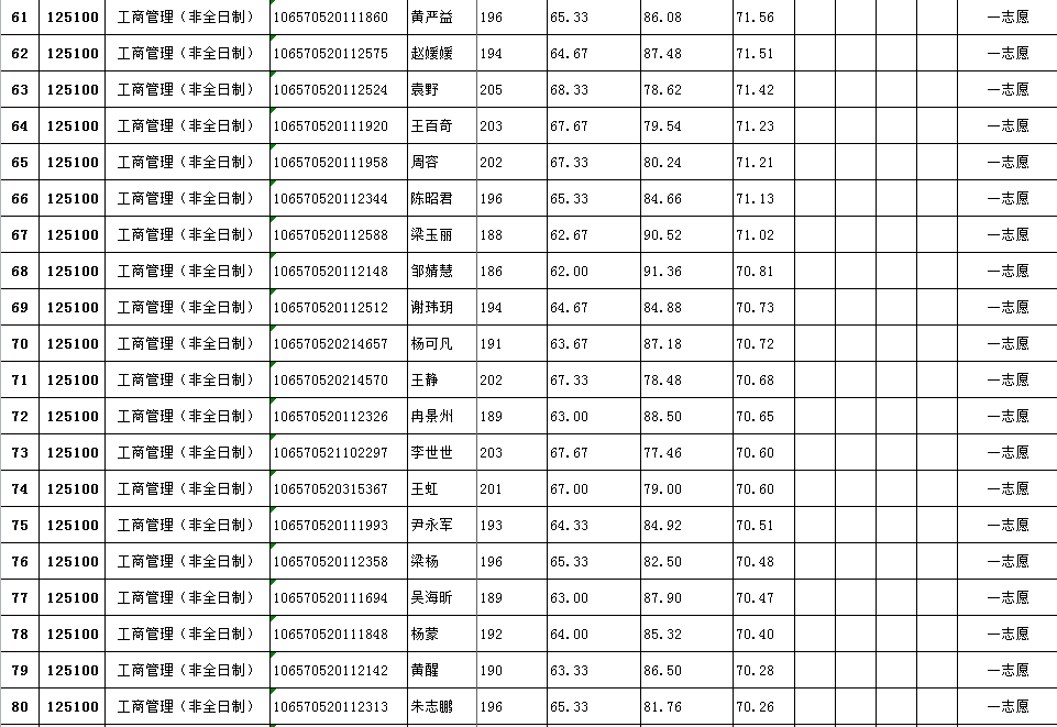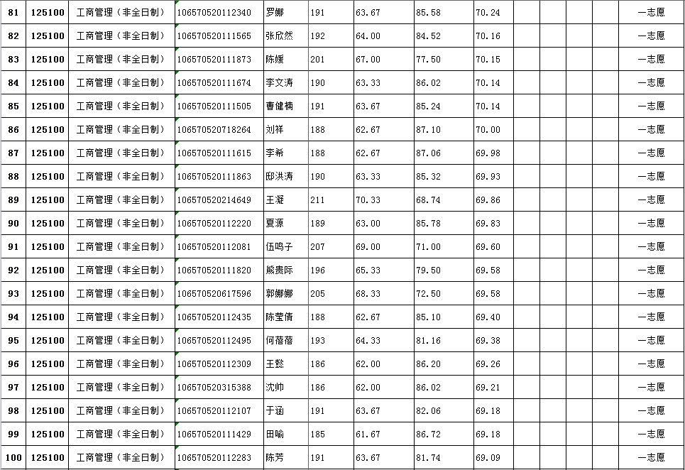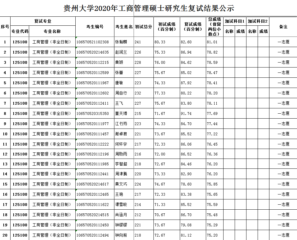 贵州大学2020年工商管理硕士研究生复试结果公示