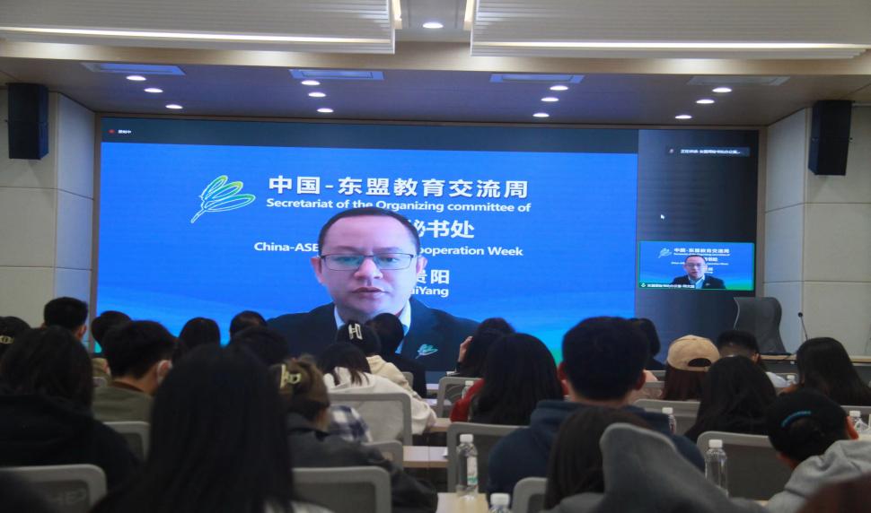 东盟教育交流周组委会秘书处办公室副主任——陈文益为开幕仪式致辞。他指出中国与东盟是山水相连、文化相通、血脉相亲、利益相融的关系。多年以来,中马两国积极深入合作,期待贵州大学与拉曼大学以东盟教育交流周为契机,加强双边与多边联动,深化全面互通合作,为双边教育合作探索新的方向和目标,并预祝本次研讨会全面取得圆满成功。