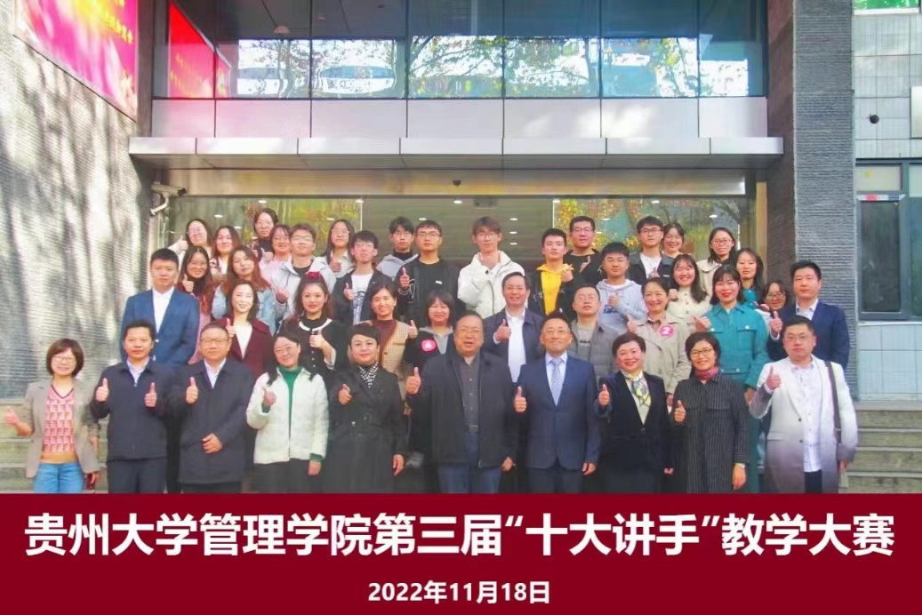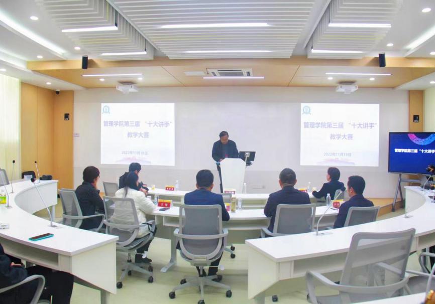 为加强学院教师队伍建设、提高人才培养质量,2022年11月18日,管理学院第三届“十大讲手”教学大赛于东校区致远楼101教室举行。我院领导王秀峰、周莉莉、宋山梅出席本次大赛,贵州师范大学教务处处长支敏、贵州财经大学、武汉大学博导,贵州省交通运输厅贵州交通经济技术研究院院长赵光辉、贵州理工学院食品药品制造工程学院党总支委员、教师党支部书记卢永仲、贵州大学青年教师教学竞赛训练营教练组组长林岚涛、原贵州大学管理学院会计系系主任李会萍5人担任大赛评委。此次共有18名教师参赛,比赛由管理学院副院长宋山梅主持。