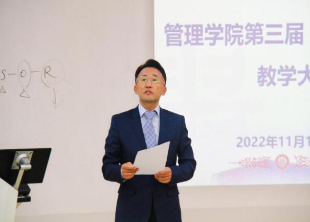 首先,管理学院党委书记王秀峰致开幕词。他指出,教师的天职是教学,提高教育教学质量是学校永恒的主题,提高课堂教学质量是提高教育教学质量的关键,而提高课堂教学质量需要抓好教学的基本功。他强调,只有练好教学基本功,站好三尺讲台,才是一名称职的教师,才无愧于学生。最后,王秀峰祝愿参与大赛的教师在比赛当中充分发挥聪明才智,沉着认真应对,坚持踊跃交流、团结进步的宗旨,以良好的心理素质和精神风貌赛出风格,赛出水平,取得良好的成绩。