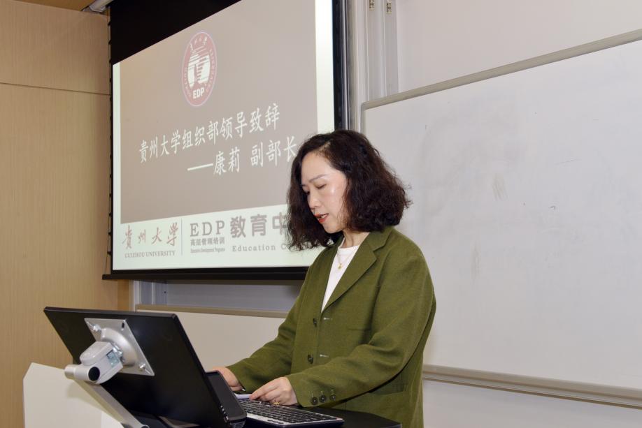 贵州大学正处级组织员、贵州大学教育培训管理工作专班负责人付芳,贵州大学组织部副部长康莉,贵州大学管理学院党委书记王秀峰,贵州大学EDP教育中心主任张勇出席本次开班式,开班式由贵州大学管理学院副院长宋山梅主持。