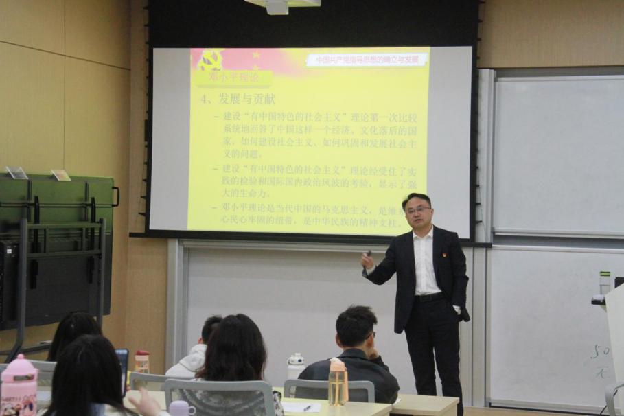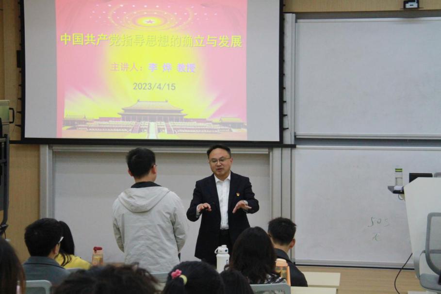 2023年4月15日上午8:00, 贵州大学管理学院院长李烨教授在管理学院102教室为学院第三十八期入党积极分子培训班授课,课程主要围绕“中国共产党指导思想的确立与发展”展开。