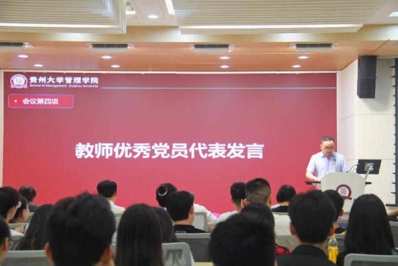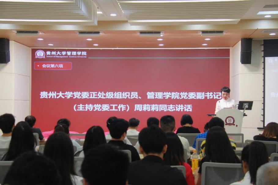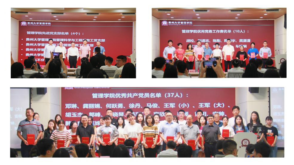 为深入学习贯彻习近平新时代中国特色社会主义思想和党的二十大精神,引导全院基层党组织和广大党员深刻领悟“两个确立”的决定性意义,不断增强“四个意识”、坚定“四个自信”、做到“两个维护”,将党的二十大精神部署落实到各项工作中,推动学院高质量发展。2023630日中午,贵州大学管理学院召开“七一”表彰大会,学院党委领导出席本次会议,学院各支部委员及党员代表、优秀共产党员、优秀党务工作者、先进党支部代表参加本次会议。会议由管理学院党委副书记邓琳主持。