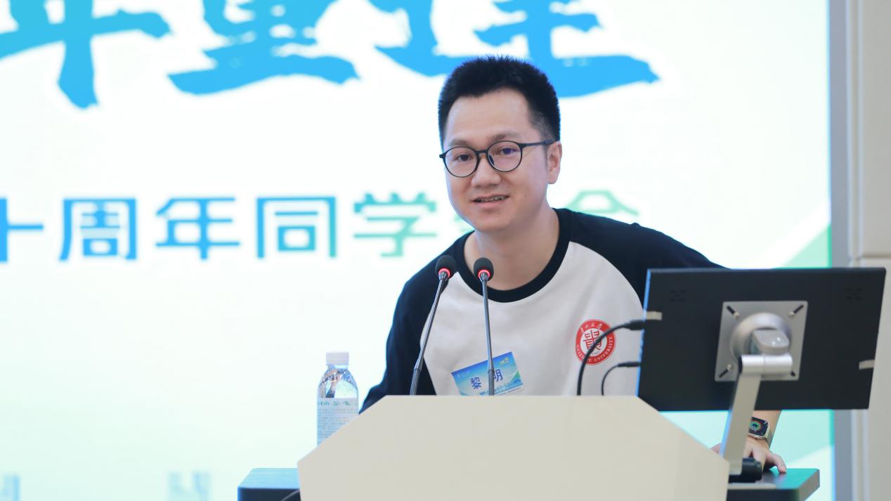 黎明校友作为校友代表发言,提及再度重回校园,感慨于学校和学院日新月异的发展,承载满满回忆的校区外景和教室内设等都令人惊喜;感慨于学院已取得的各类丰硕育人成果,每一项成果的取得都集聚了各位老师和后辈学弟学妹的共同努力,也让今日到场的校友倍感振奋和荣耀。在发言中,他回忆了在校期间的流年往事,对学院提供这样一个和同窗、恩师相聚再见的平台表示了感谢,表示作为校友将继续和学院协同奋进、共同实现更大成就。