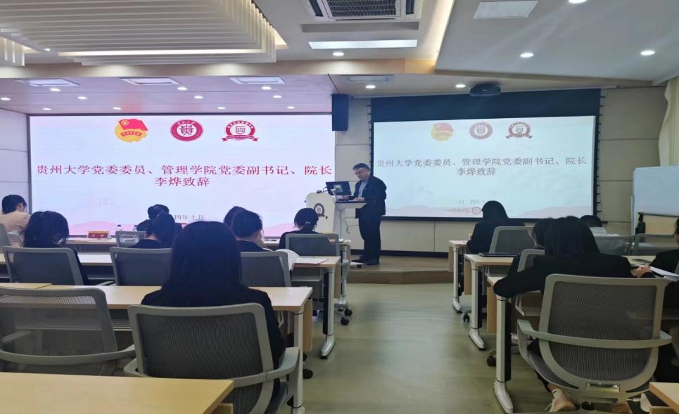 随后,贵州大学党委委员、学院党委副书记、院长李烨致辞。他强调学生会和研究生会是学院联系广大学生的桥梁和纽带,肯定了管理学院团学工作取得的各类成绩,并对学院学生组织提出了三点要求。一是要引导广大青年学生跟党走,坚定正确的政治方向,激发广大青年学生为实现中国梦奋斗。二是要不断加强自身建设,团结带领广大青年学生为学院建设凝聚青春力量。三是要以服务学生为根本,代表广大学生的整体利益和长远利益,切实增强在学生中的的威信和感召力。最后李院长对学院学生组织成员表达殷切期望与鼓励。