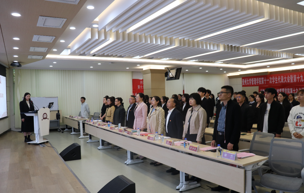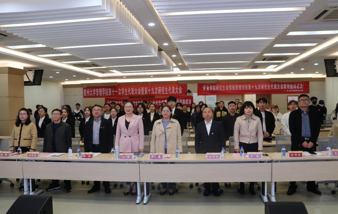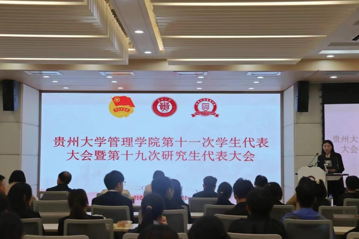 按照共青团贵州大学委员会批复指示,10月14日中午管理学院第十一次学生代表大会暨第十九次研究生代表大会在管理学院305报告厅顺利召开。本次大会由管理学院团委负责人赵一萍主持。贵州大学团委副书记李媛受邀参加本次大会,管理学院党委书记王迪,贵州大学党委委员、学院党委副书记、院长李烨,贵州大学党委正处级组织员、学院党委委员李开学,学院副院长李本光,学院副院长王婷,学院党委副书记邓琳,学院副院长许为宾,学生科兼研究生科辅导员李莹老师,学生科辅导员陈黔江老师,还有各校级组织以及各学院培养单位、学生会以及研究生会的主要负责人参加会议。