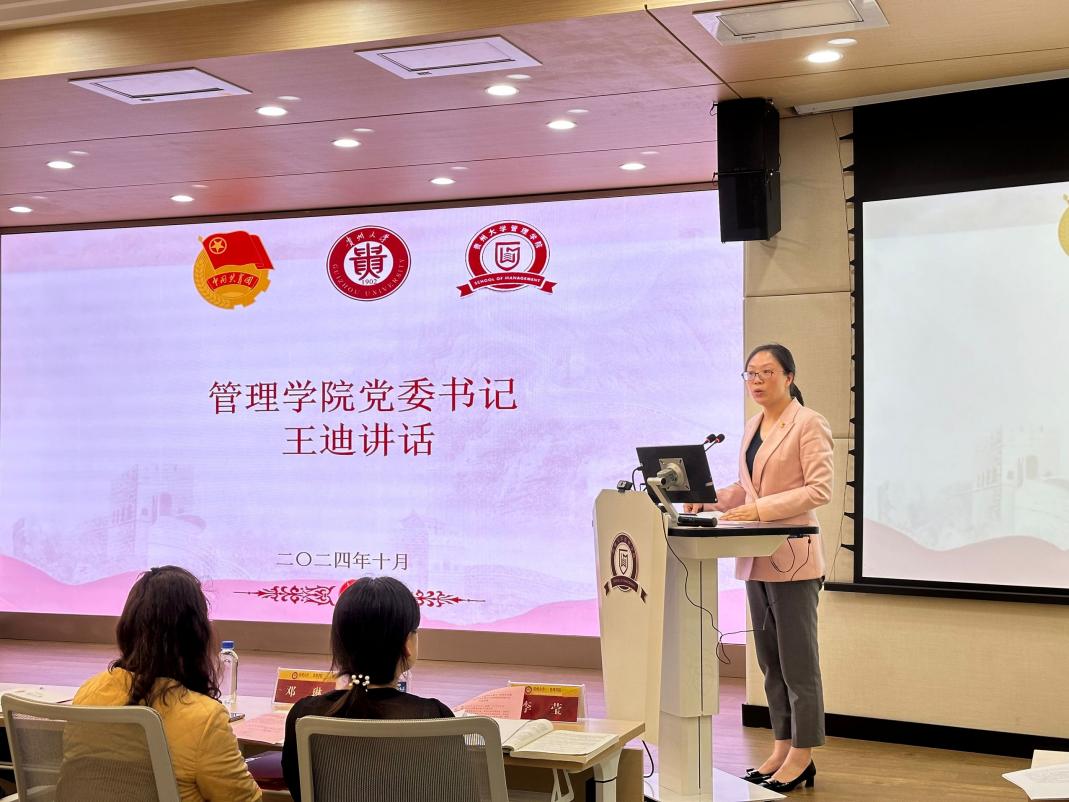 大会第七项贵州大学管理学院党委书记王迪讲话。王书记对我院学生会、研究生会在过去一年中取得的可喜成绩表示了充分肯定,同时为更好地完成工作任务对同学们也提了三点要求:一是要学以致用,把学习作为一种生活的态度。二是始终牢记服务宗旨,把同学的满意度作为检验工作的标准。三是持续深挖专业特色,在日常工作和活动中充分发挥学科优势。最后, 王书记代表管理学院表达了对学生会和研究生会的殷切期盼,希望学院新一届的学生干部继承发扬我院学生会组织的优良传统,脚踏实地,奋勇拼搏,团结带领全院同学成长为有理想,敢担当、能吃苦、肯奋斗的新时代好青年,把学生会组织建设成为让党放心、师生满意、社会认可、朝气蓬勃的先进学生组织,为实现贵州大学和学院的高质量发展不懈奋斗,贡献青春力量!